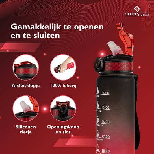 Supplife Nederlandse Motivatie Waterfles - Onyx Red - 1 Liter