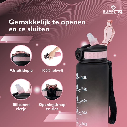 Supplife Nederlandse Motivatie Waterfles - Black Pink - 1 Liter