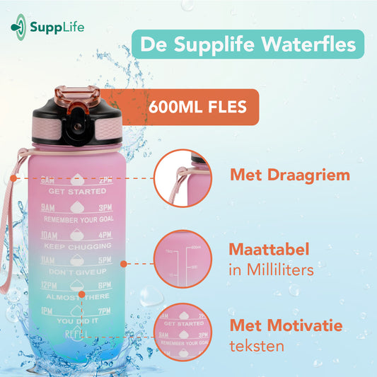 UitverkochtSupplife Motivatie Waterfles Pink Aqua - 600 ml