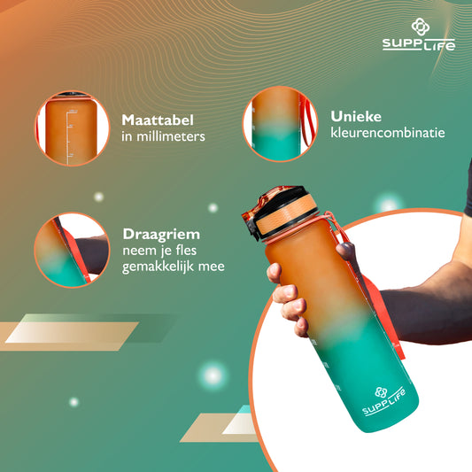 Supplife Nederlandse Motivatie Waterfles - Orange Cyan - 1 Liter