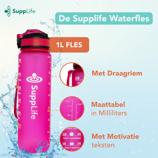 UitverkochtSupplife Motivatie Waterfles - Roze - 1 Liter